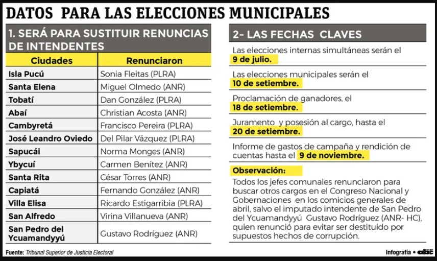El 9 de julio se realizan las internas municipales y el 10 de setiembre, la elección del próximo Intendente de Capiatá, según el cronograma de la Justicia Electoral.