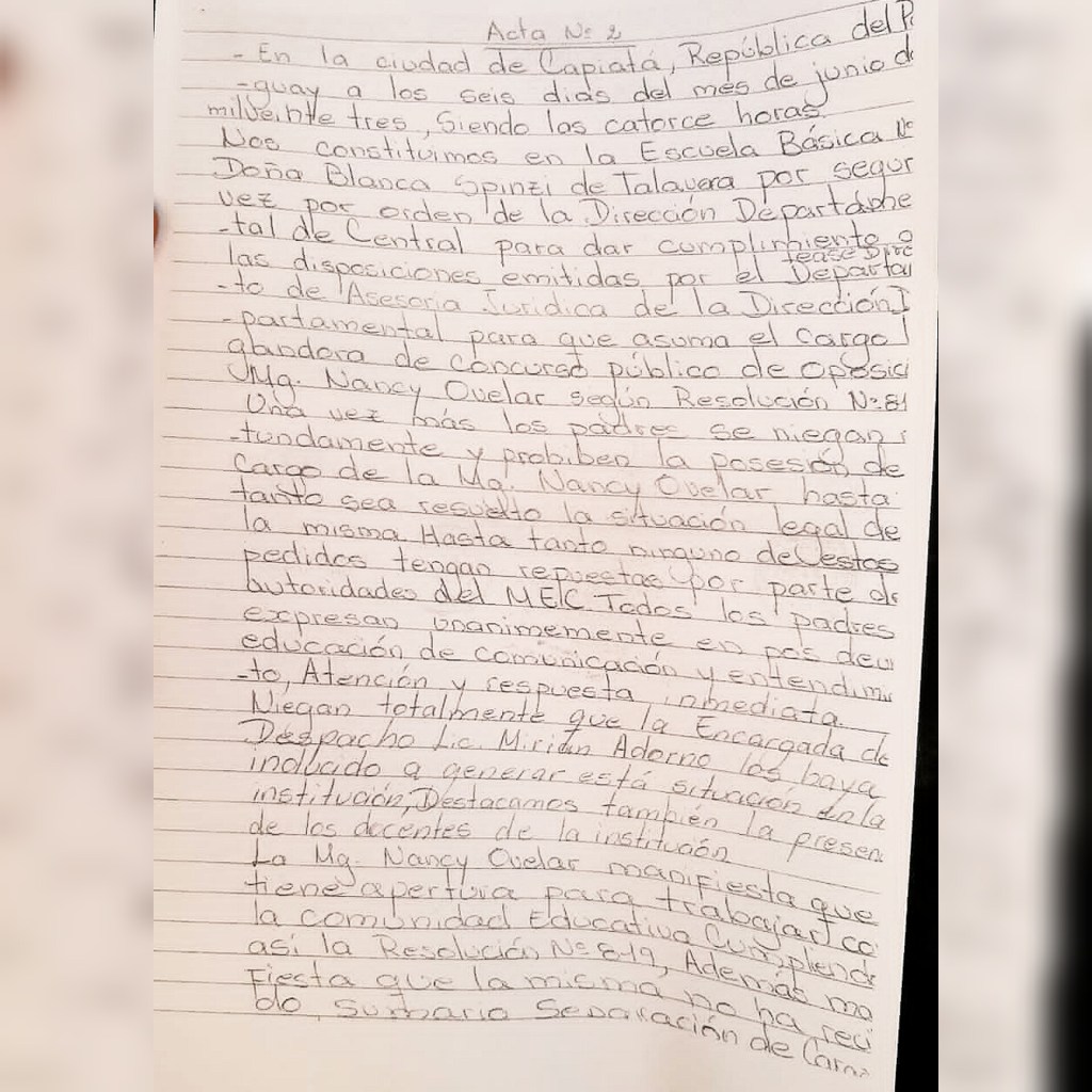 Los padres se opusieron a que la licenciada Mirian Adorno sea removida del cargo de encargada de despacho para ubicar allí a Nancy Ovelar.