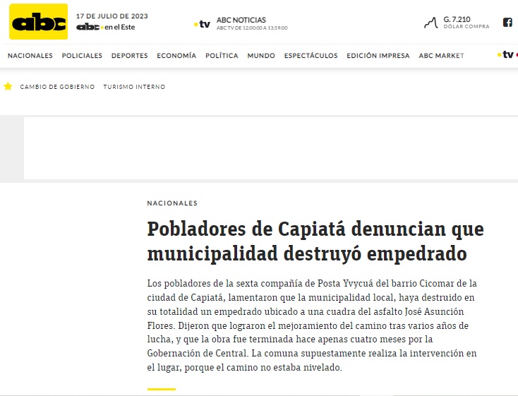 Capiatá está en el ojo de la tormenta de la prensa nacional por el conflicto que se generó a raíz de la construcción de un empedrado en el barrio Kennedy y que este medio viene publicando.
