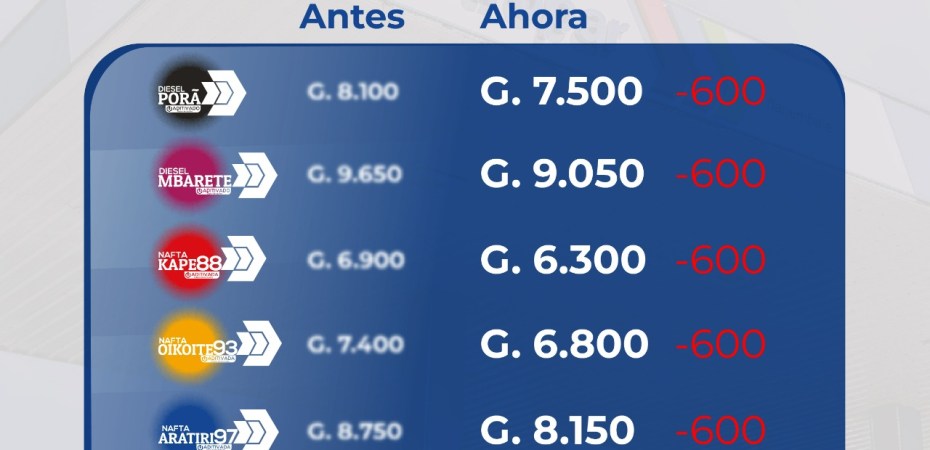 El Gobierno de Santiago Peña cumplió la promesa de bajar los combustibles tras asumir. Todas las naftas y los diéseles tendrán una reducción de G. 600 por litro según el anuncio que realizó el mandatario y el presidente de Petropar Eddie Jara.