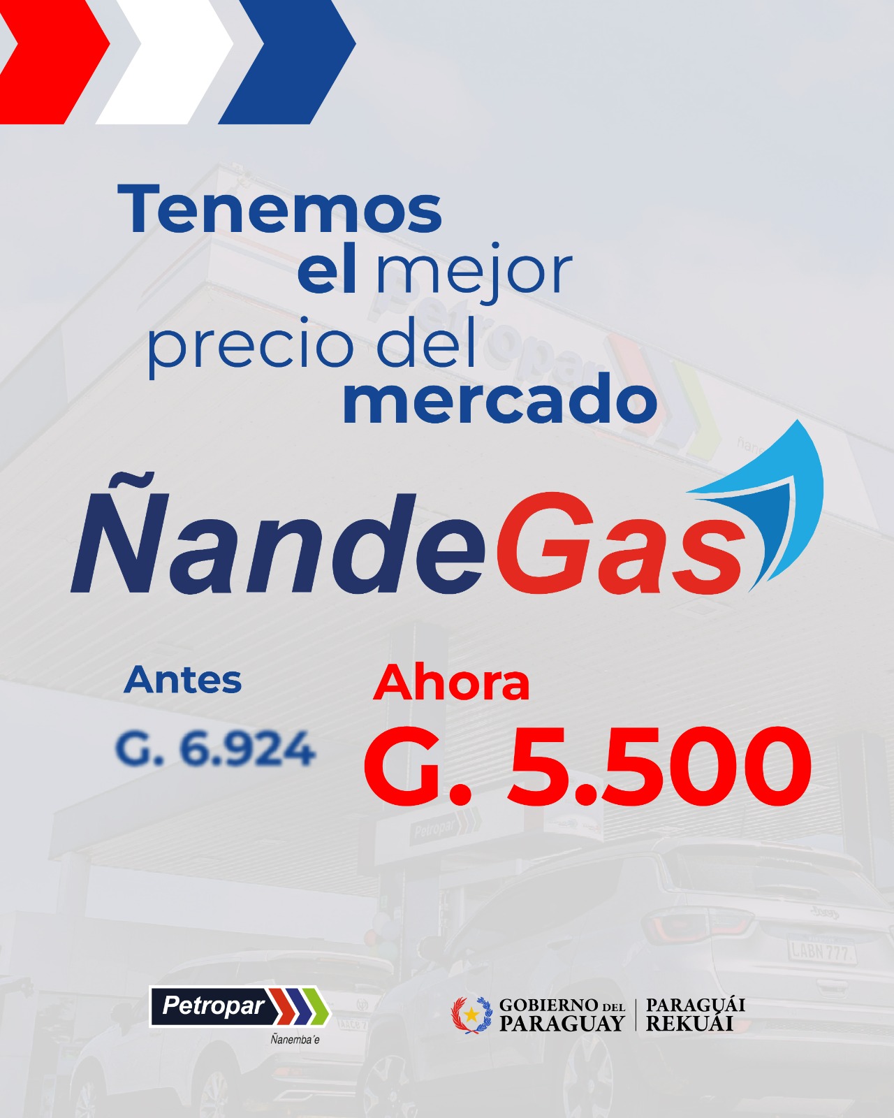 En cuanto al gas de uso domiciliario, se reduce G. 1.424 por litro/kilo.