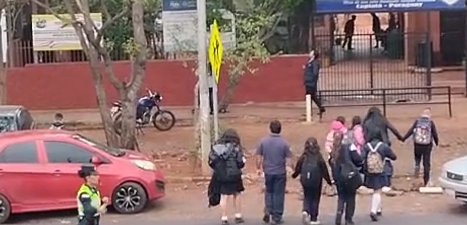 La suboficial Lilian Amarilla es la que de lunes a viernes cumple una labor importantísima frente a la Escuela Margarita Veia de Bibolini en Capiatá al asegurarse que los escolares y adultos puedan llegar a la institución sanos y salvos. La D027 es una ruta muy peligrosa para los peatones.