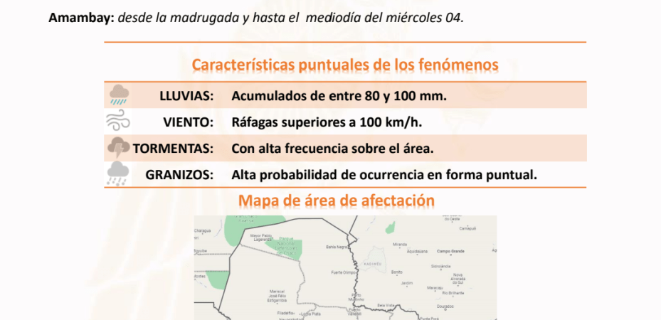 La zona norte será afectada el miércoles de madrugada, específicamente San Pedro, Canindeyú, Amambay.