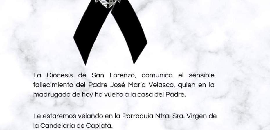 Se confirma el fallecimiento del padre José María Velasco, cura párroco de la Parroquia Virgen de la Candelaria de Capiatá. Sus restos serán velados en el Templo de la Candelaria desde las 8:00.