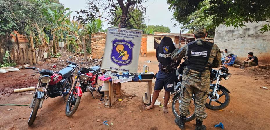 En su poder se encontraron 600 dosis de cocaína, 1,420 dosis de crack, 460,000 guaraníes en efectivo y cuatro motocicletas. Según el agente antinarcóticos Santiago Ibarra, la droga incautada pesaba 65 gramos de cocaína y 142 gramos de crack.