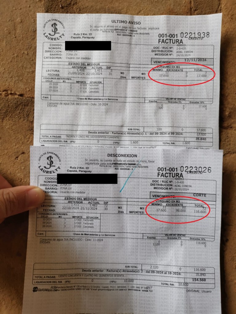 Uno de los afectados relató su caso indignado: “En un solo mes, mi factura registró un excedente de casi 100.000 guaraníes. Vivo solo, no tengo hijos, ni siquiera lavarropas o piscina que puedan justificar semejante consumo”.