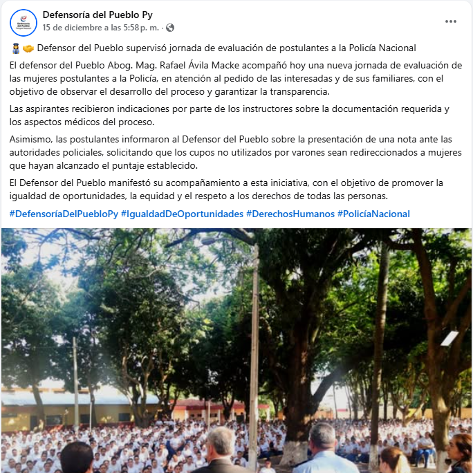 Un grupo de 605 aspirantes masculinos a Policía Nacional que no fueron llamados, presentaron una nota al comandante de la Policía Carlos Benítez, para solicitar integrar el cupo establecido de 4.000 plazas para el ingreso de hombres a la institución.